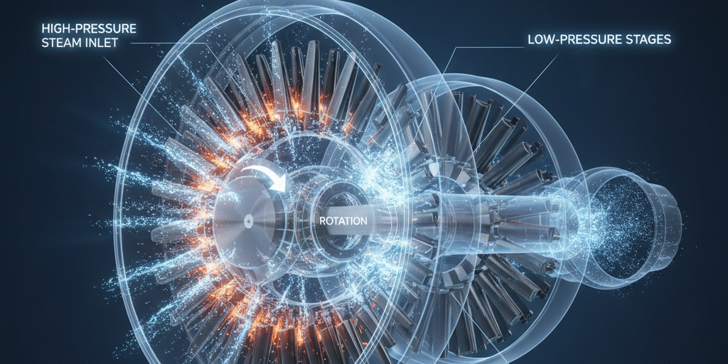 Turbin uap adalah mesin vital yang menjadi tulang punggung hampir 90% pembangkit listrik di seluruh dunia, termasuk pembangkit listrik tenaga uap (PLTU), nuklir, hingga panas bumi. Mesin ini bertugas mengubah energi termal dari uap bertekanan tinggi menjadi energi mekanik, yang kemudian digunakan untuk memutar generator listrik. Singkatnya, turbin uap adalah jembatan utama yang menghubungkan panas dengan listrik.